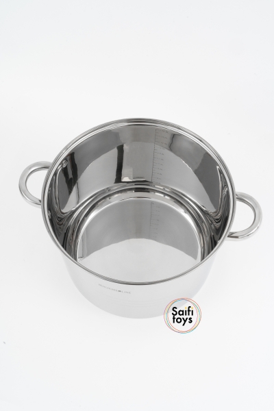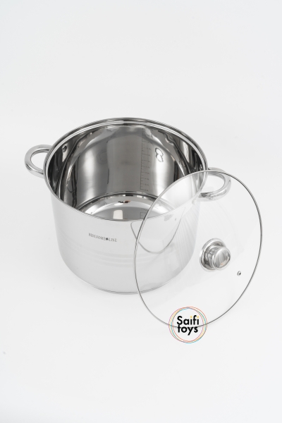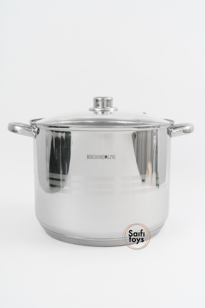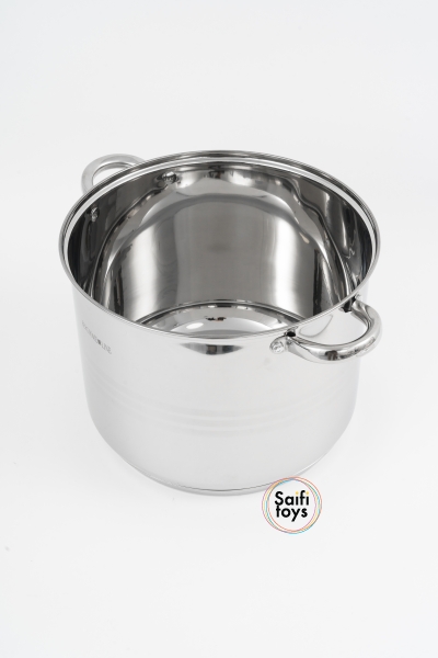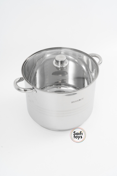 Кастрюля 13.5л из нержавеющей стали с крышкой .Нержавеющая сталь 18/10, подходит для всех типов плит в т.ч индукция. крышка из закаленного стекла с отверстием для выпуска пара, ненагревающиеся клепаные ручки, мерная шкала РАЗМЕТКА ДО 12Л, 7-слойное дно, для моментального нагревания и сохранения тепла. Диаметр кастрюли и крышки 28см. Диаметр дна 25см. Высота (без крышки) 22 см .